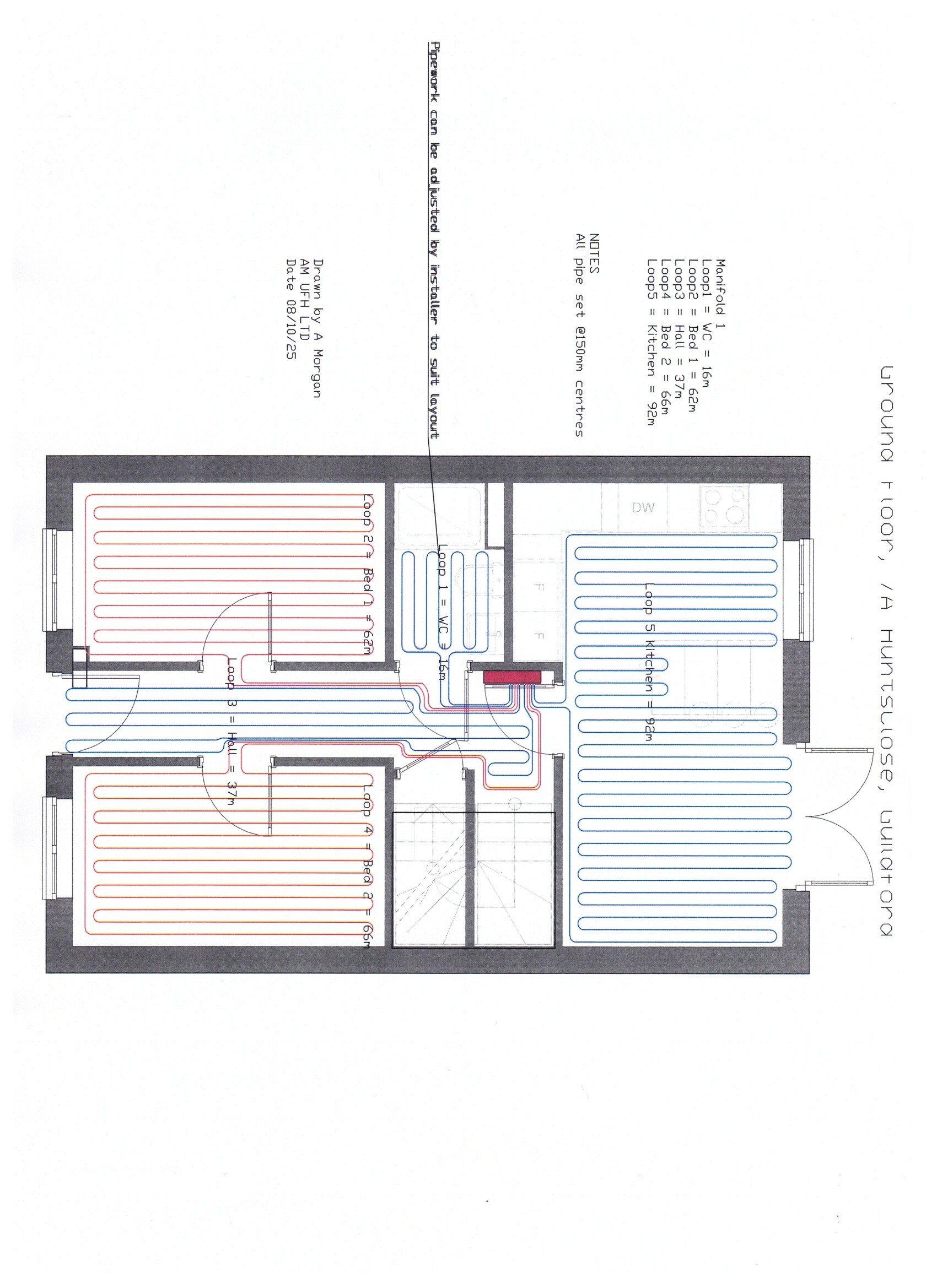 Also when CAD is used it helps to know exactly how many loops are required giving the length and spacing of the ufh pipework. Call AM UFH LTD discuss your project or to order your system.